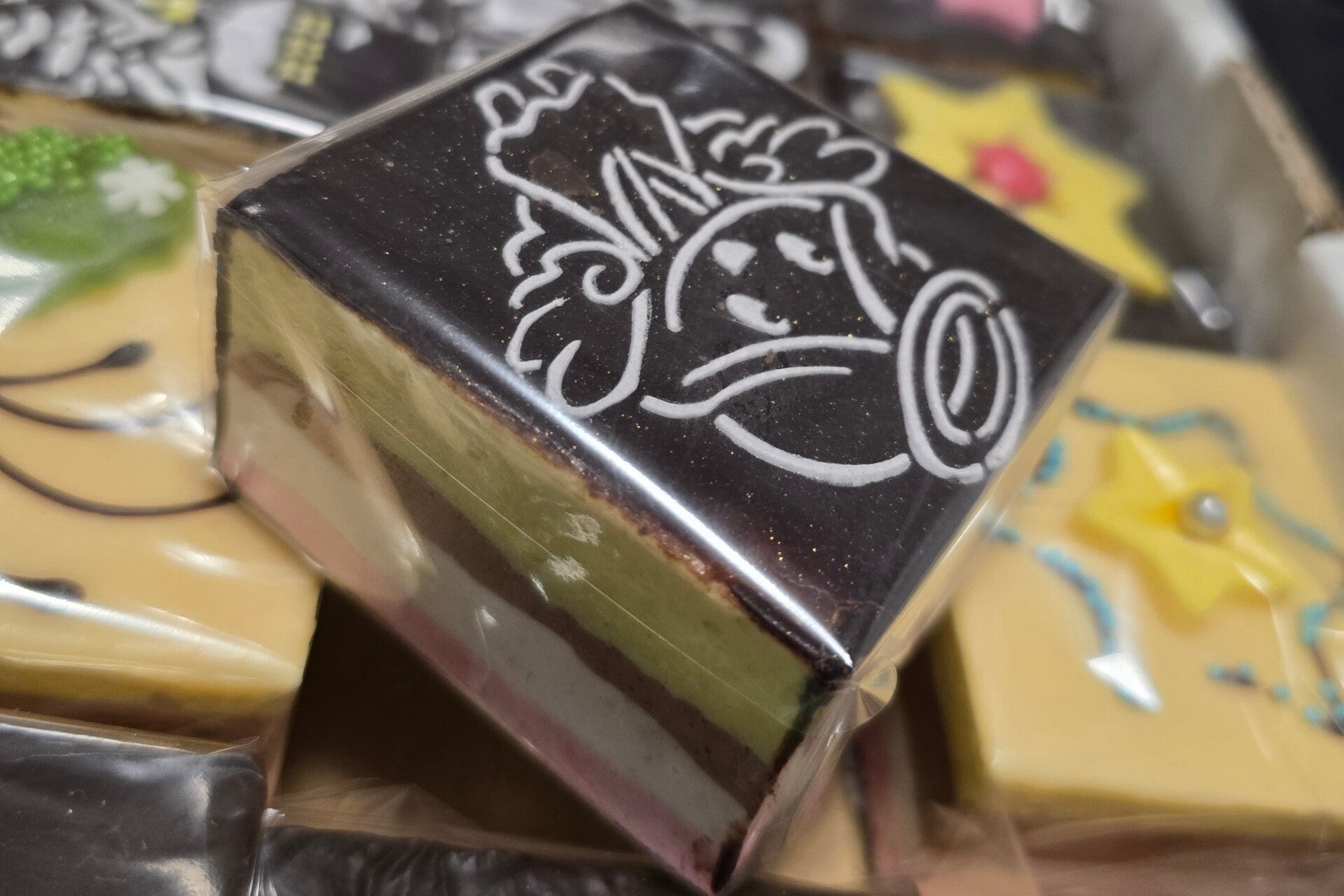 Zutaten: Zucker, Glukosesirup, Wasser, Säureregulator – Citronensäure E330, Verdickungsmittel – Agar-Agar E406, natürliche Aromen, 0,01 % natürlich gefärbtes weißes Pulver (E141, E100, E120, E1600).