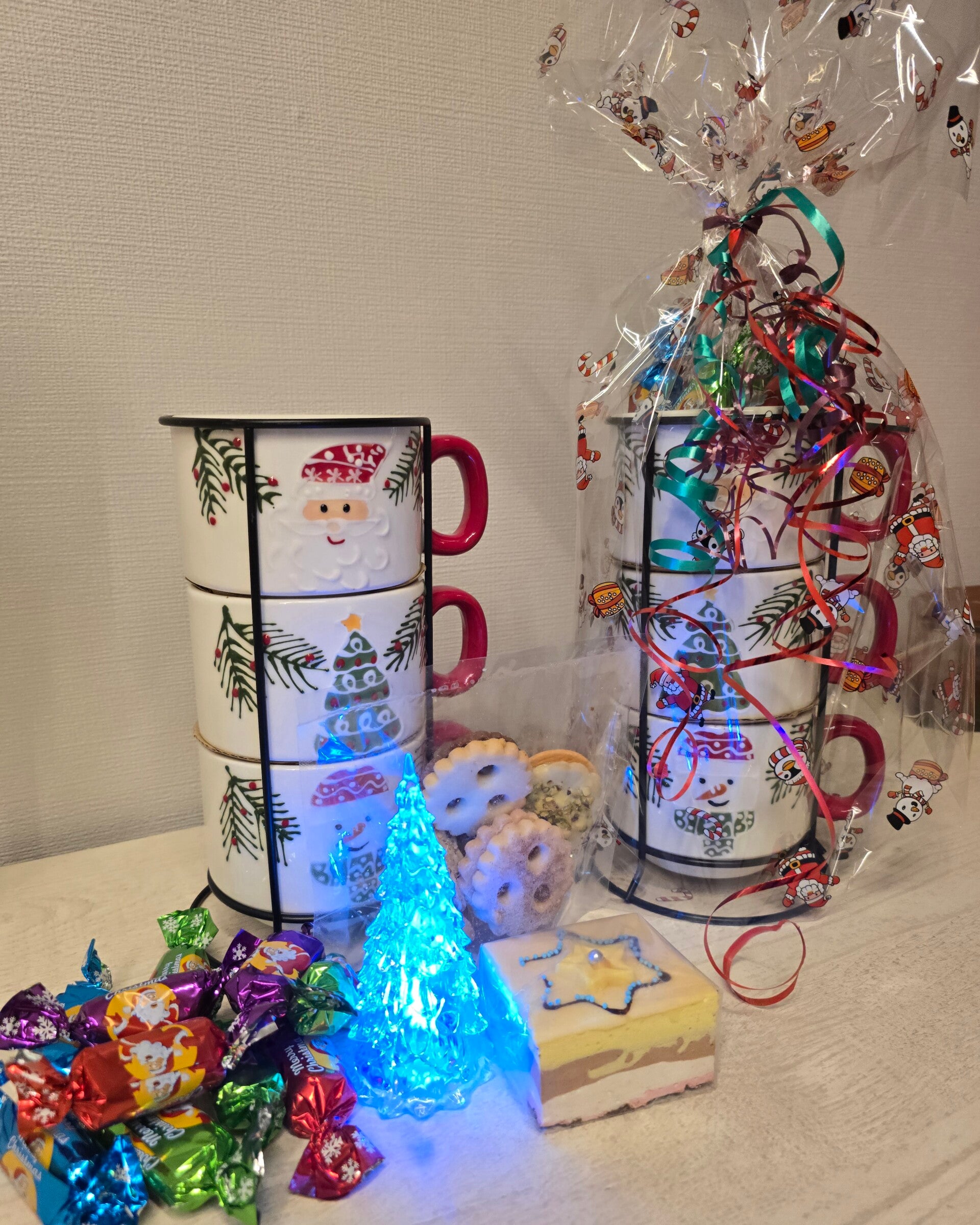 Bringe festliche Stimmung direkt nach Hause! Unser Weihnachtlicher Tassen-Turm ist das perfekte Geschenk für alle, die Genuss und Gemütlichkeit lieben. Die liebevoll gestapelten Weihnachtstassen sind randvoll mit hochwertigen Leckereien gefüllt – ideal als Mitbringsel, Adventsüberraschung oder Geschenk unterm Tannenbaum.